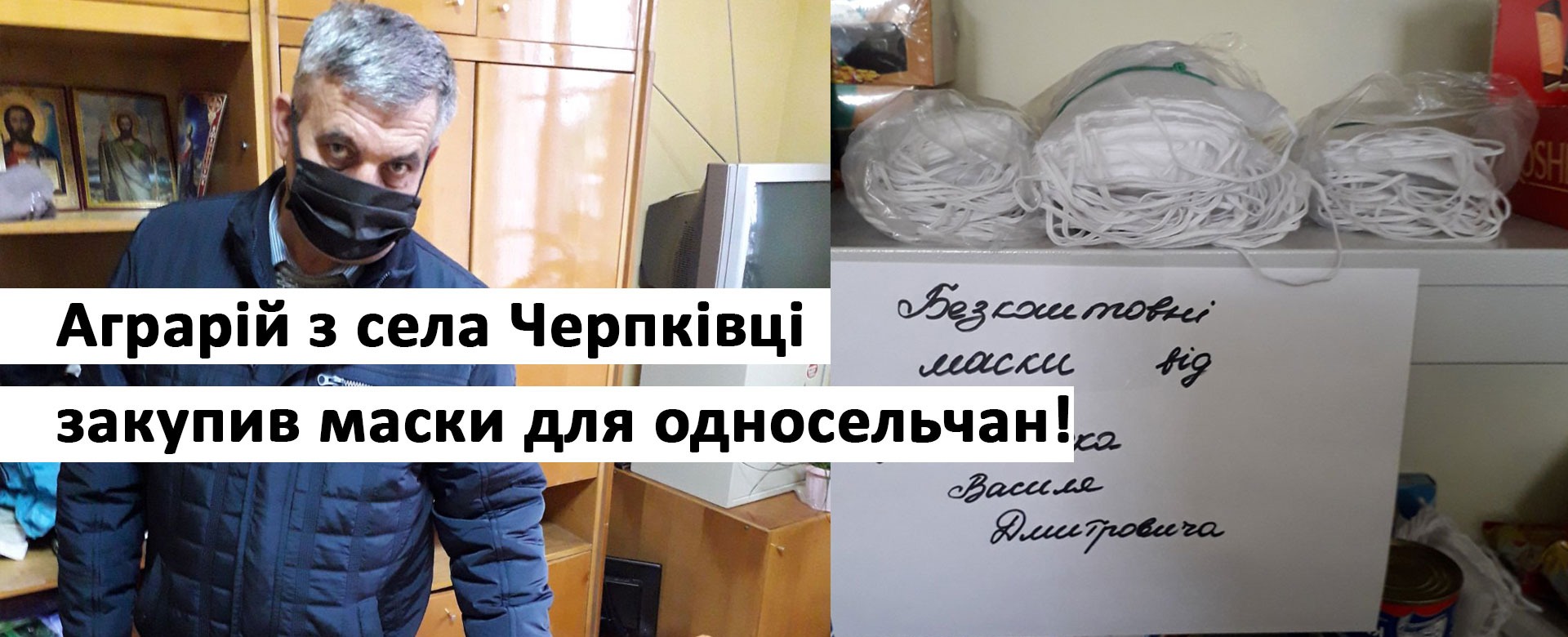 Микитюк Василь Дмитрович аграрій-підприємець з села Черепківці, закупив маски і через торгові заклади та релігійні громади сіл Черепківці та Новий Вовчинець роздає жителям безкоштовно.
