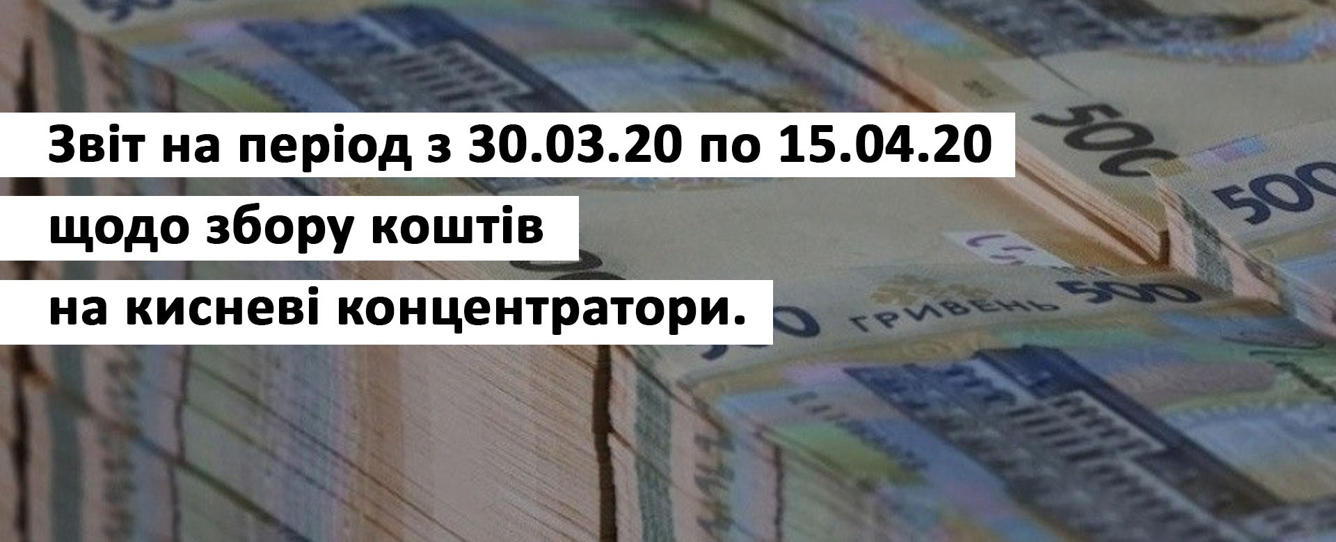 Звіт на період з 30.03.20 по 15.04.20, щодо збору коштів на кисневі концентратори.