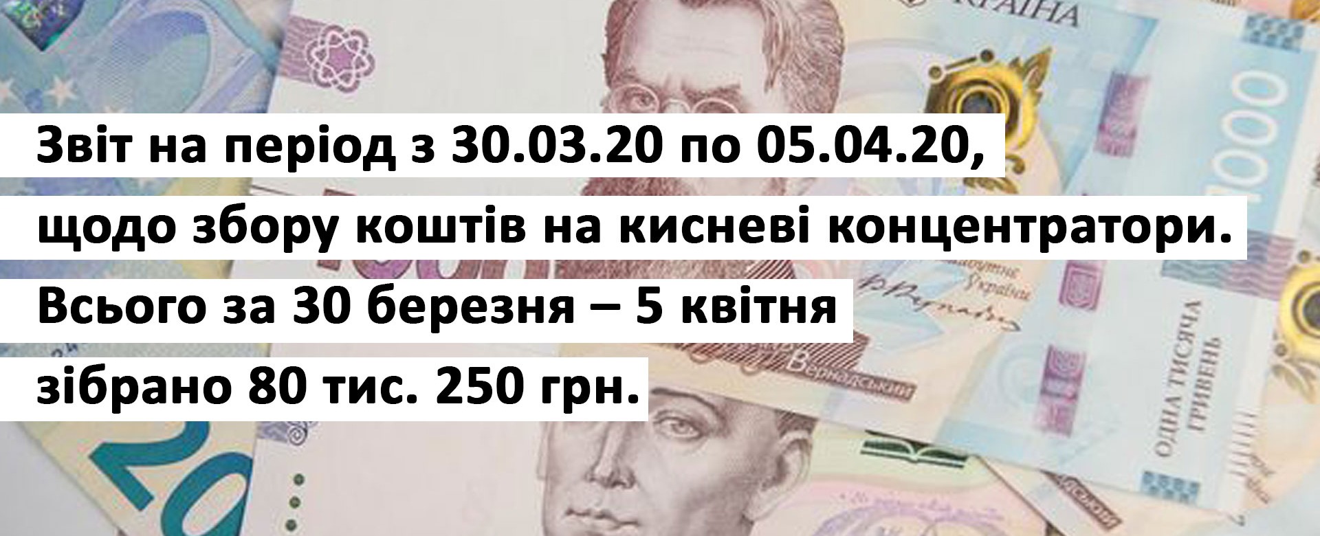 Звіт на період з 30.03.20 по 05.04.20, щодо збору коштів на кисневі концентратори.