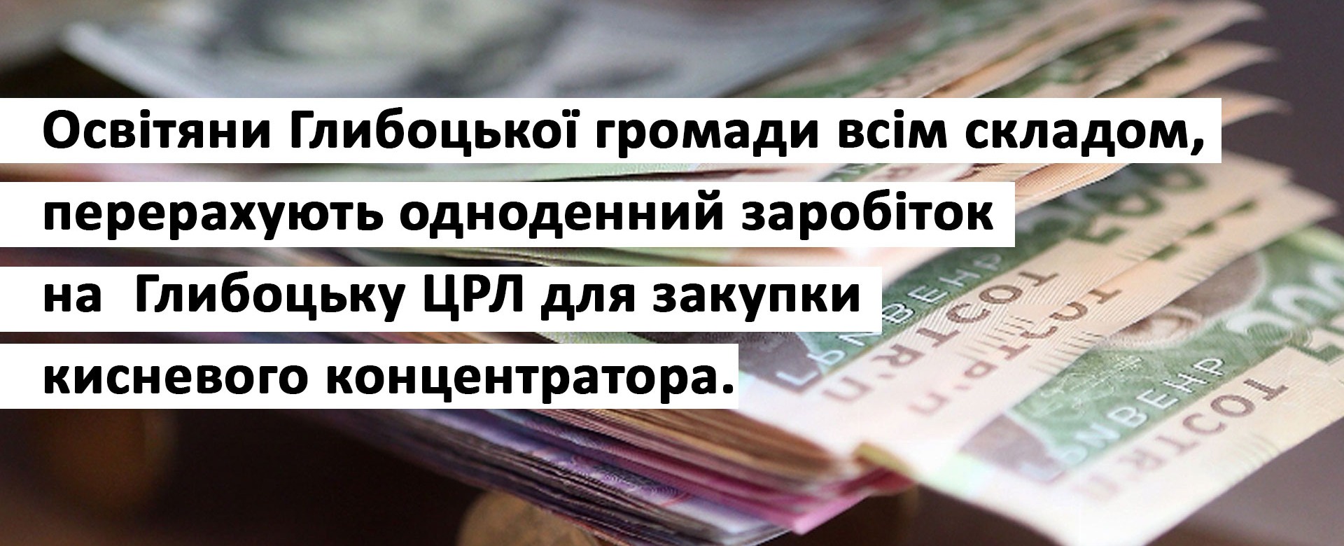 Освітяни навчальних закладів Глибоцької ОТГ та працівники відділу освіти молоді, та спорту, Глибоцької селищної ради, всім складом, перерахують одноденний заробіток на Глибоцьку ЦРЛ для закупки кисневого концентратора.